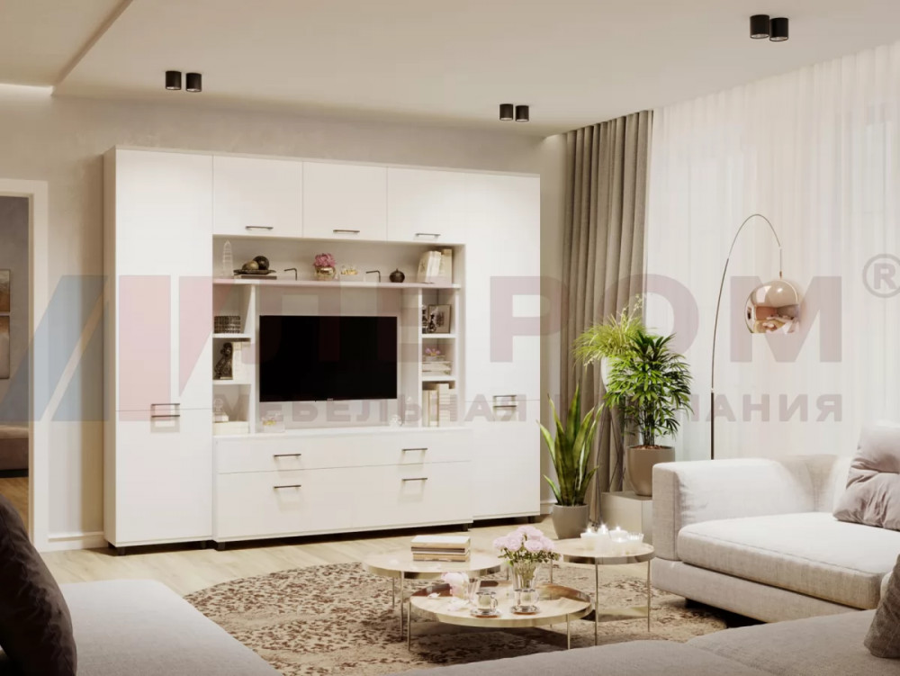 Гостиная СИДНЕЙ-2 (ш3000*г470*в2000мм), ЛДСП Белый/ЛДСП Ателье светлое