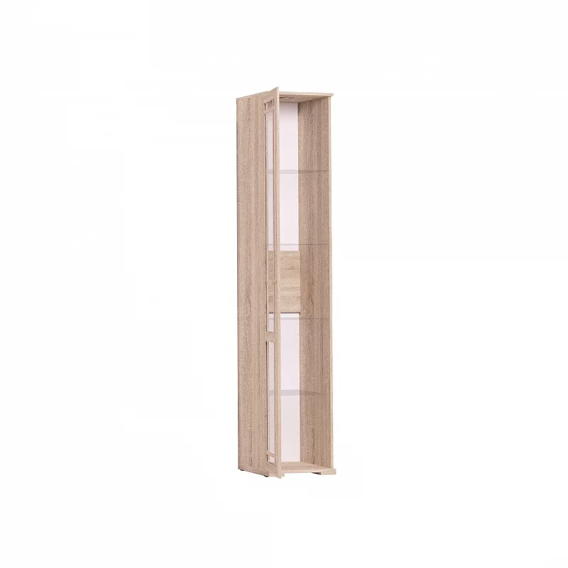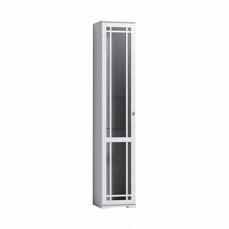 Витрина в гостиной означает, что хозяева любят и ценят семейные традиции. В ней можно выставлять не только посуду, но и фотографии, совместно приобретенные сувениры, красивые интерьерные мелочи или детские поделки. На стеклянных полках толщиной 4 мм с еврокромкой можно разместить любые вещи весом до 10 кг. Встроенная подсветка поможет создать необходимую атмосферу и создать акценты для внимания гостей. Она оснащена трансформатором и подключается к бытовой электросети 220 В. Благодаря переплету из тонкого профиля МДФ дверь не перенавешивается на другую сторону.