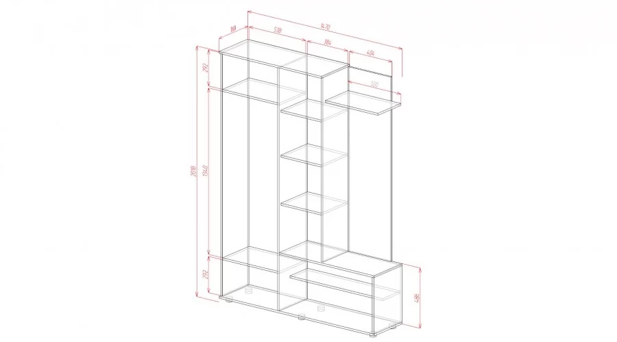 Габариты 1470(Ш) х 360(Г) х 2018(В) мм.