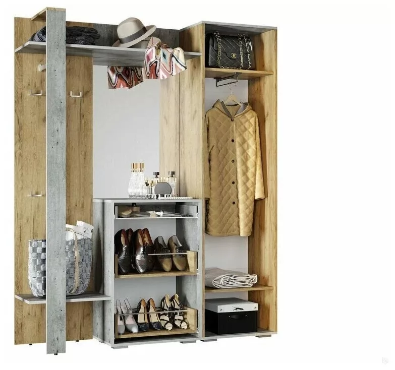 Модуль данной прихожей универсален, собирается как на правую, так и на левую сторону.