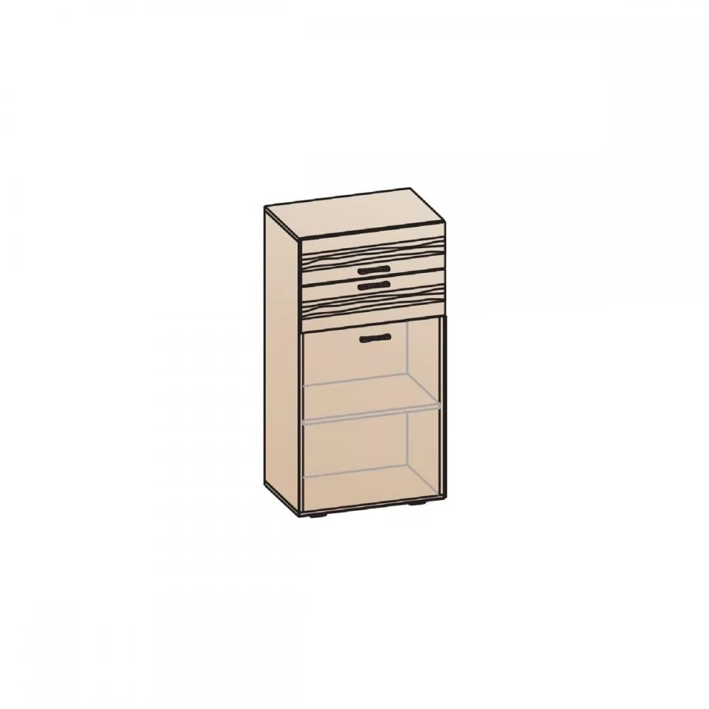 Фасадная часть - фрезерованная плита МДФ в пленке ПВХ. В серии используется ручка-скоба 96 мм (сатин светлый). Корпус - ЛДСП 16 мм. Комплектуются регулируемыми опорами L-20. Выдвижные ящики снабжены шариковыми направляющими полного выдвижения.