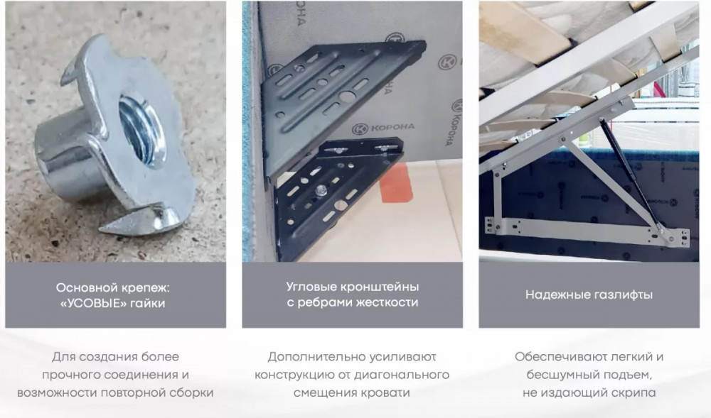 Имеет полный набор доступных опций: комплектация подъёмным механизмом, настилом, ортопедическим основанием.