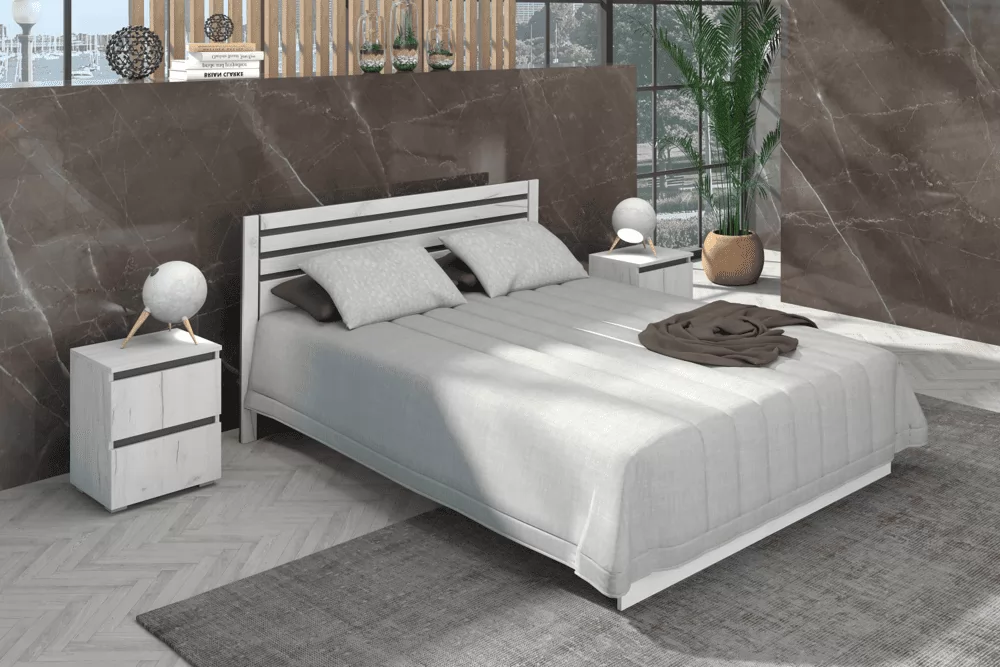 Изящная и функциональная спальня "Лиана" выполнена в модном цвете ЛДСП крафт белый с контрастными вставками цвета графит, либо крафт золотой. Кровать "Лиана" с настилом из ЛДСП рассчитана на нагрузку до 90кг на 1 спальное место. Матрас в комплектацию кровати не входит и приобретается отдельно