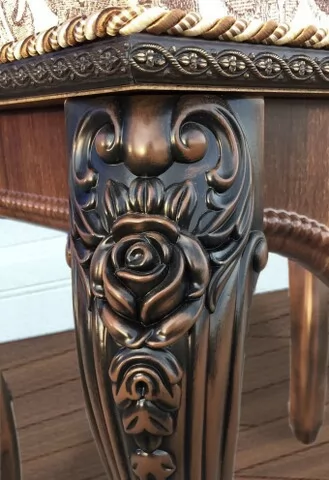 Спальный гарнитур выполнен в классическом стиле. Это изысканный дизайн с резными элементами и декором. Овальное изголовье, рисунки на фасадах, придают мебели для спальни эффект дороговизны и благородства. Такая спальня способна восхищать и удивлять.  Вы можете приобрести как весь комплект, так и по отдельности. Изделия отвечают  всем стандартам и имеют длительный срок эксплуатации.