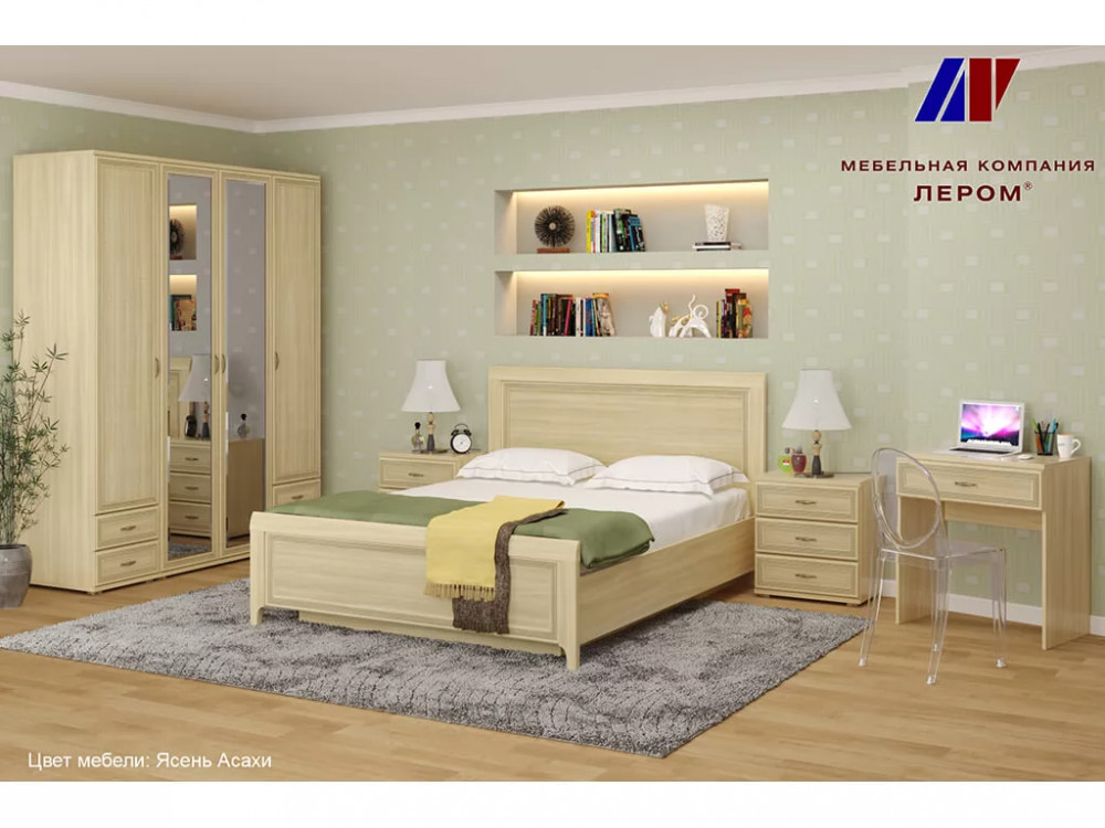 Кровать с мягким изголовьем КР-1012 1400х2000 Ясень Асахи