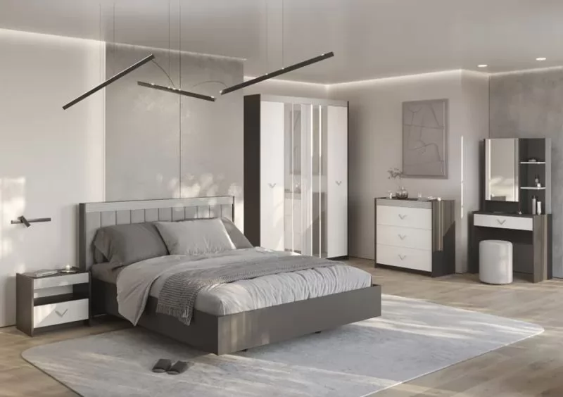 СТЕФАНИ Спальня №1, ЛДСП Графит-МДФ Серый софт/ЛДСП Рамух белый в Тарко-Сале