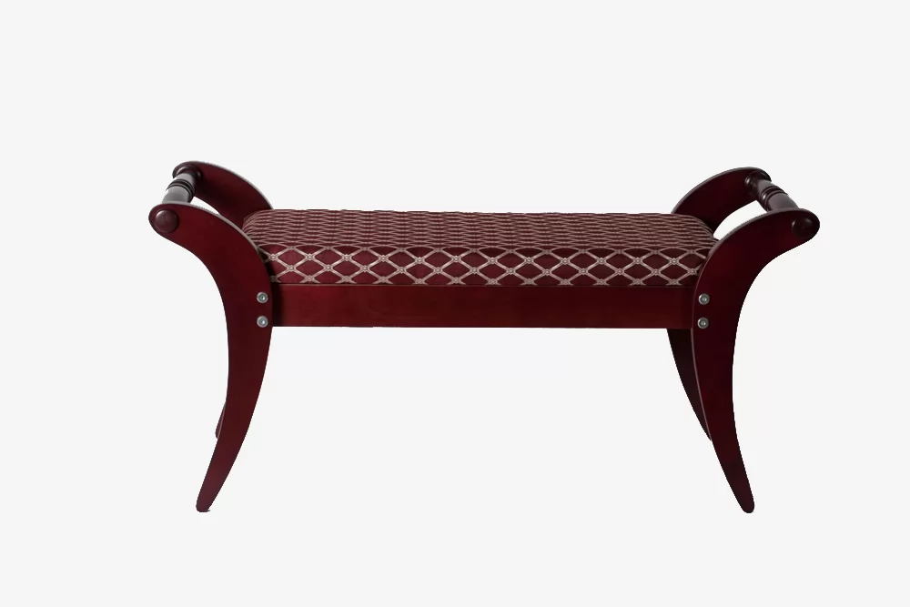 Банкетка из массива представлена в трех разных оттенках с мягким сидением в износостойкой жаккардовой обивке, а также дополнена удобными ручками.